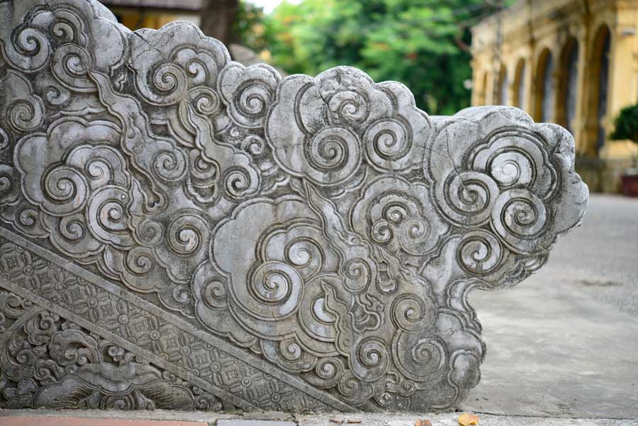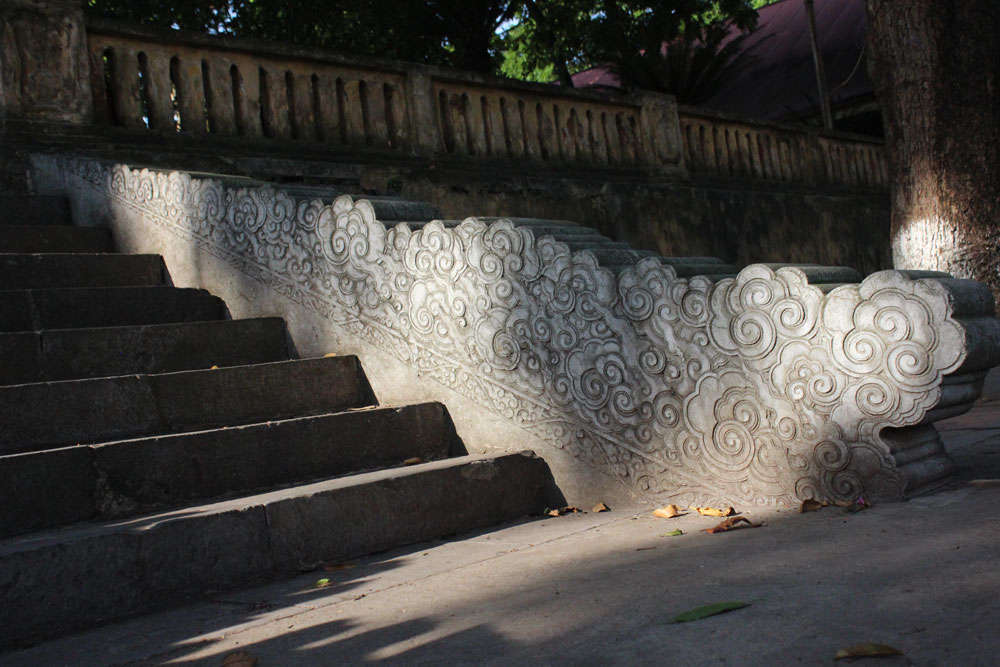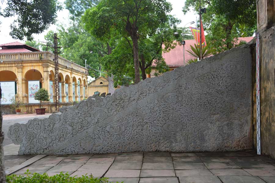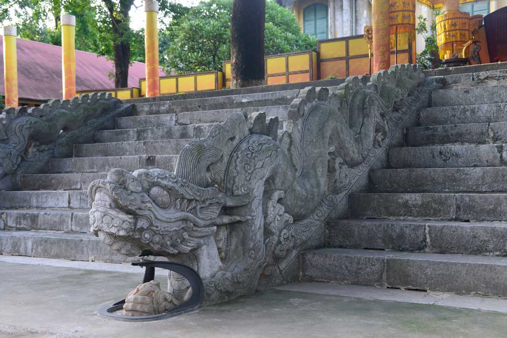 thành chạm mây hóa rồng (hai bên); tạo thành 03 lối lên xuống. Lối đi giữa dành riêng