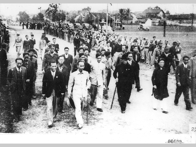 Chủ tịch Hồ Chí Minh đến dự buổi họp mặt với các cử tri Thủ đô tại bãi Phúc Tân, ngày 5/1/1946