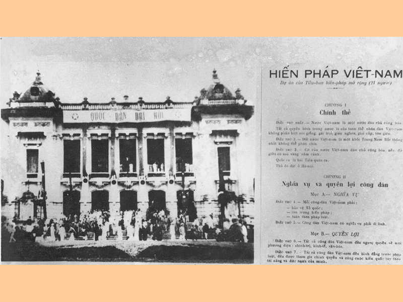 Ảnh: Quang cảnh trước hội trường. Quốc hội đã ban bố bản Hiến pháp đầu tiên của Nhà nước Việt Nam Dân chủ Cộng hòa, năm 1946.