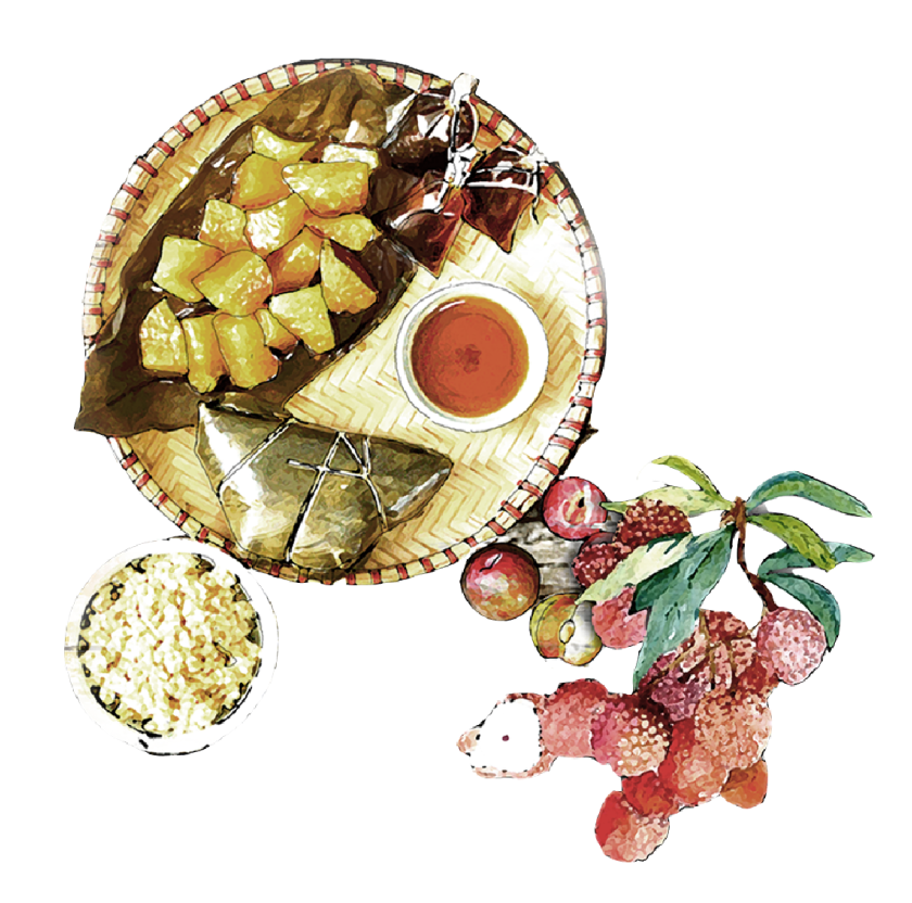 Bánh trôi hay chè trôi nước là một món ngon từ gạo nếp bày trên mâm cúng và bàn tiệc Tết Đoan Ngọ. Những viên bánh trôi tròn trĩnh được làm từ bột nếp nhồi kỹ cho đến khi dẻo mịn, bọc lấy nhân ở giữa là đậu xanh. Một chén chè trôi nước ngon không thể thiếu vị ngọt của đường, vị bùi của vừng, vị thơm của gừng và vị béo ngậy của nước cốt dừa. Sở dĩ món này được người dân ăn vào Tết Đoan Ngọ vì cho rằng các món từ gạo nếp sẽ có tác dụng rất tốt trong việc diệt trừ sâu bọ ngày này.