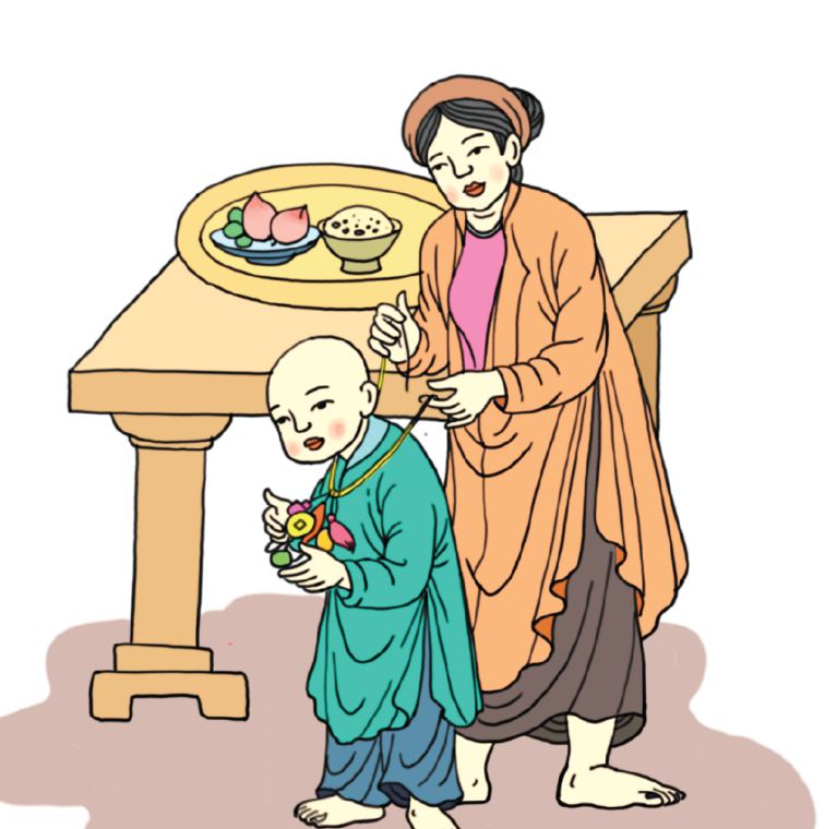 Vào dịp tết Đoan Ngọ, người lớn thường đeo cho các em nhỏ chùm bùa ngũ sắc (bùa tua, bùa túi) hoặc túi vải hình vuông đựng hạt mùi khô ở ngực, buộc chỉ ngũ sắc ở cổ tay và cổ chân. Dân gian tin rằng: chỉ ngũ sắc ứng với màu ngũ hành giúp trừ tà; bột hùng hoàng có tác dụng xua đuổi rắn, rết; hạt mùi kỵ gió; trái cây ngụ ý giết sâu bọ.