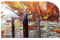 Tranh vẽ Thăng Long nhìn từ sông Hồng, thế kỷ XVII Tác giả: Trịnh Quang Vũ
