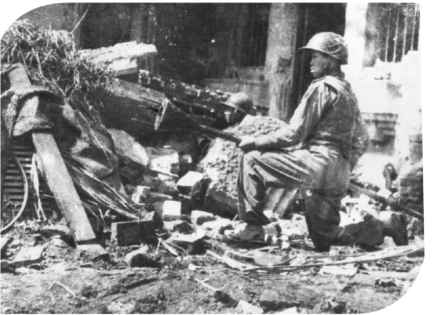 Hai chiến sĩ quyết tử đang chờ xe tăng giặc để lao bom ba càng, năm 1946 - 1947