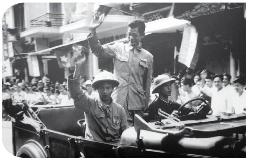 Bác sĩ Trần Duy Hưng, phó Chủ tịch Ủy ban Quân chính vẫy chào nhân dân trong ngày giải phóng Thủ đô 10/10/1954