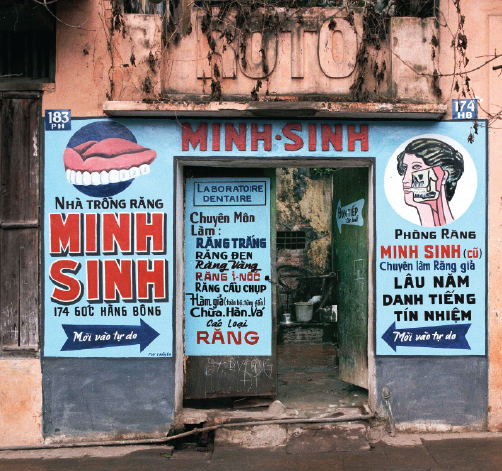 Bảng hiệu vẽ bằng tay trên tường của phòng khám răng 174 Hàng Bông, năm 1986