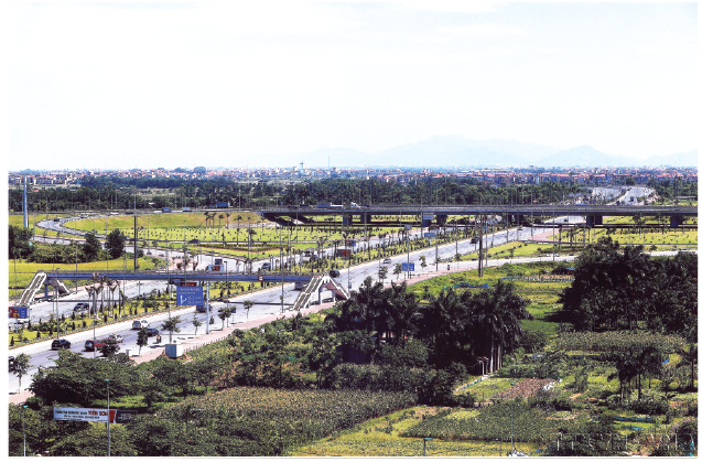 Hà Nội xây dựng mới đường Trường Sa, Hoàng Sa và đường Võ Nguyên Giáp. Trong ảnh là cầu vượt nút giao Vĩnh Ngọc vượt đường Võ Nguyên Giáp, nối đường Trường Sa và Hoàng Sa.