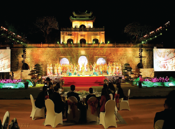 Trong ảnh là Thủ tướng Việt Nam tổ chức lễ tiệc chiêu đãi cấp nhà nước đối với các đại biểu dự Đại hội đồng Liên minh Nghị viện thế giới lần thứ 132, tại Hoàng thành Thăng Long