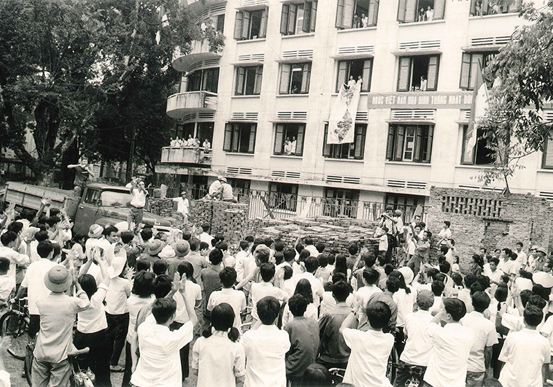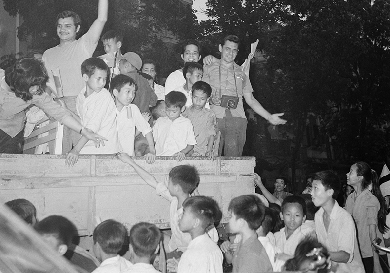 ...Men say chiến thắng bừng bừng trên khuôn mặt mọi người. Chẳng kể quen hay lạ, ta hay Tây, chẳng bị ngăn cách về màu da, ngôn ngữ, ai nấy ôm chặt lấy nhau, tặng nhau những nụ hôn thấm đẫm nước mắt mừng vui. Đi qua số nhà 58 phố Quán Sứ, tôi giật mình vì nghe tiếng hét rất to: “Vi va Việt Nam. Vi va Việt Nam!”. Thì ra đó là các cán bộ, nhân viên Đại sứ quán Cu Ba đổ cả ra đường, tay vẫy cờ Việt Nam, cờ Cu Ba, miệng hô vang “Việt Nam muôn năm” bằng hai thứ tiếng Cu Ba và Việt Nam đến lạc cả giọng.