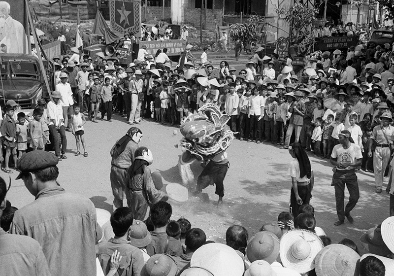 Múa sư tử mừng thắng lợi vĩ đại của dân tộc trên phố Nam