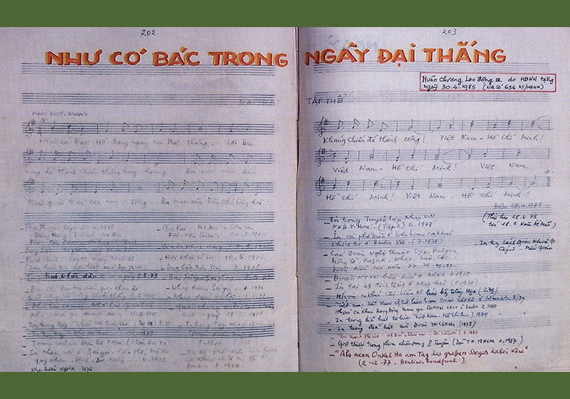 Bản nhạc và lời bài hát “Như có Bác trong ngày đại thắng” do Nhạc sĩ Phạm Tuyên sáng tác và được phát sóng vào ngày 30/4/1975