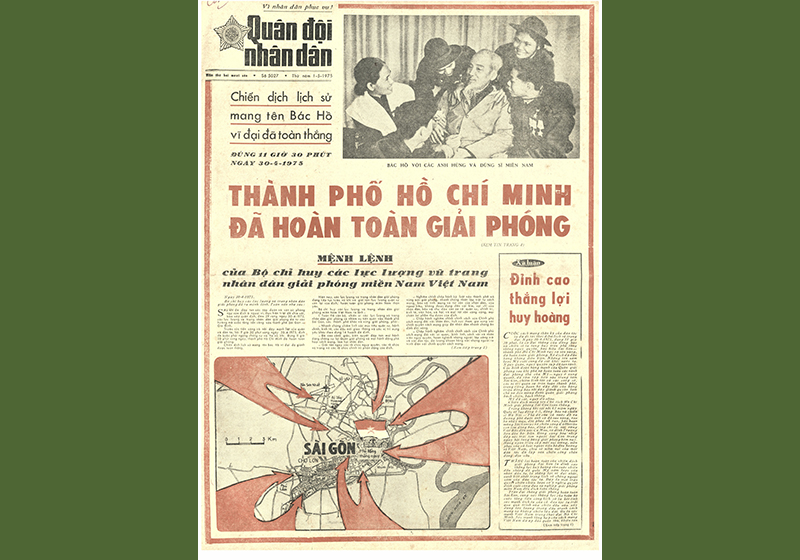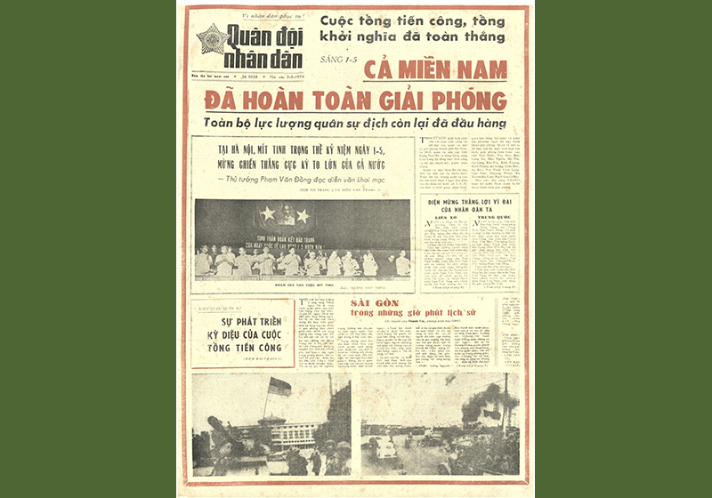 Bài viết chào mừng giải phóng Sài Gòn trên báo Quân đội Nhân dân số ngày 2/5/1975. Nguồn: Báo Quân đội Nhân dân