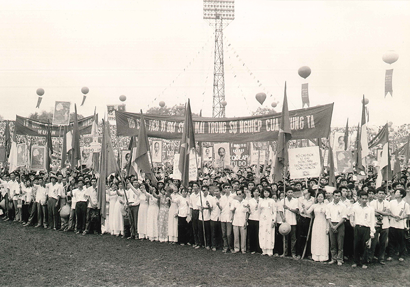 chúng diễu hành qua lễ đài, Hà Nội, ngày 15/5/1975.