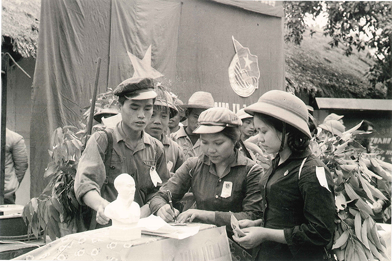 Thanh niên nô nức ghi tên tình nguyện đi chiến đấu.