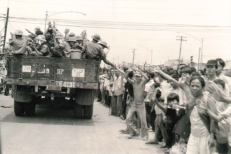 Nhân dân Sài Gòn ra đường đón quân giải phóng ngày 30/4/1975.