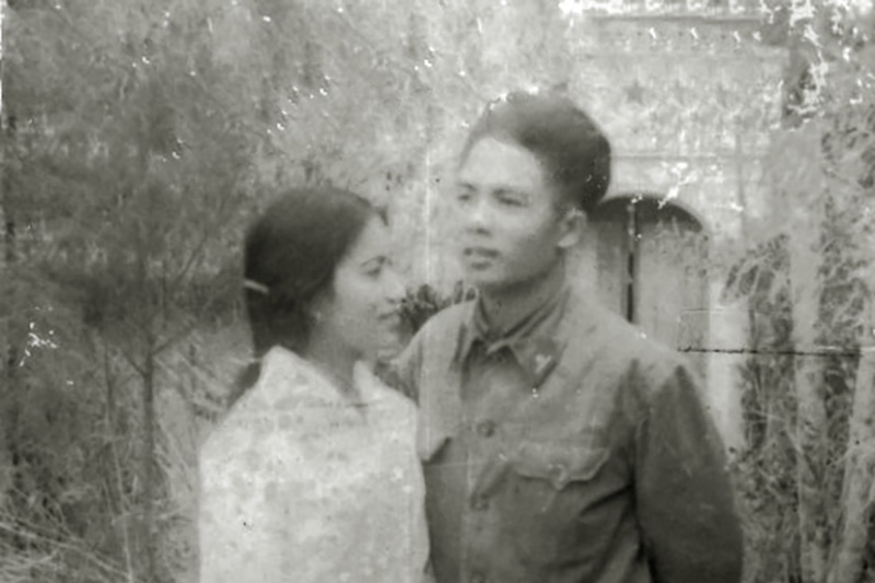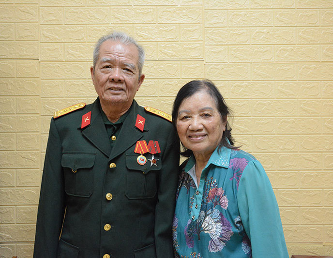 Thiếu tướng Trần Quang Tùy và bà Lê Thị Lụa - Cựu chiến binh tham gia Chiến dịch Hồ Chí Minh sư đoàn 320B tấn công Bộ Tổng Tham mưu, năm 1975