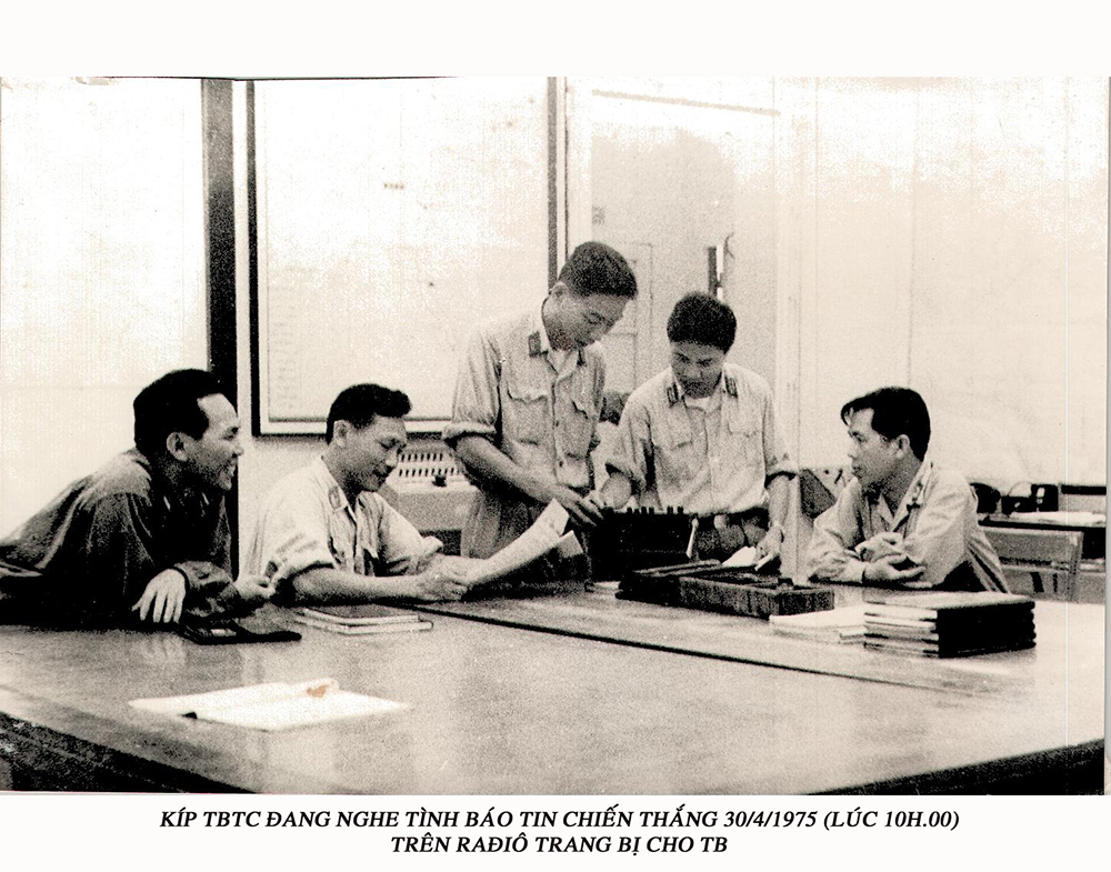 Kíp trực ban tác chiến đang nghe tình báo tin chiến thắng trên radio, 10h ngày 30/4/1975.