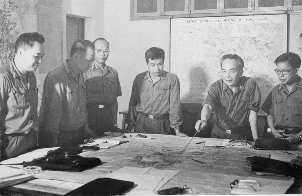 Đại tướng Văn Tiến Dũng và Bộ Chỉ huy Chiến dịch Hồ Chí Minh hạ lệnh nổ súng tấn công vào Sài Gòn, 26/4/1975. Nguồn: Bảo tàng LLVT miền Đông Nam Bộ