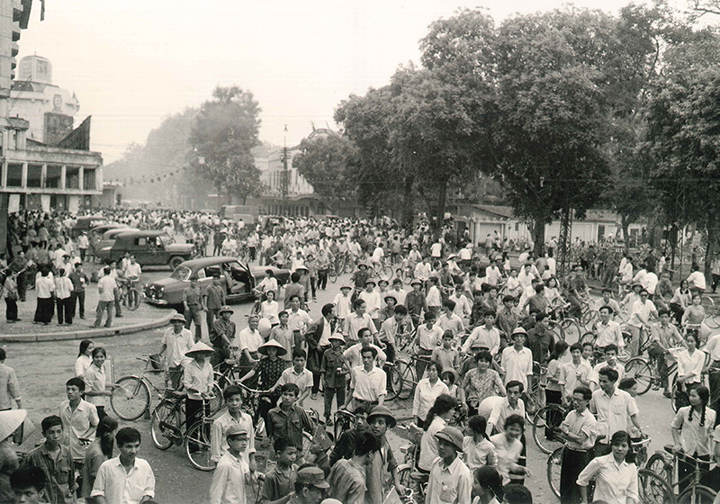 ...Lúc có tin chính thức thì dòng người đã trở thành một cuộc diễu hành chung quanh Bờ Hồ, Nhà Hát lớn, các vườn hoa, đường phố trung tâm Thủ đô. Người dân ồ ạt ra đường và hô vang “Việt Nam chiến thắng, Việt Nam độc lập”, hát “Chưa có hôm nào đẹp như hôm nay”. Các gia đình treo cờ trước nhà; Học sinh, sinh viên thì cầm cờ chạy. Không khí vui sướng ấy nó tràn ngập suốt cả ngày. Buổi tối hôm đó, mọi người tổ chức rước đuốc đến 2-3 giờ sáng mới về nhà.