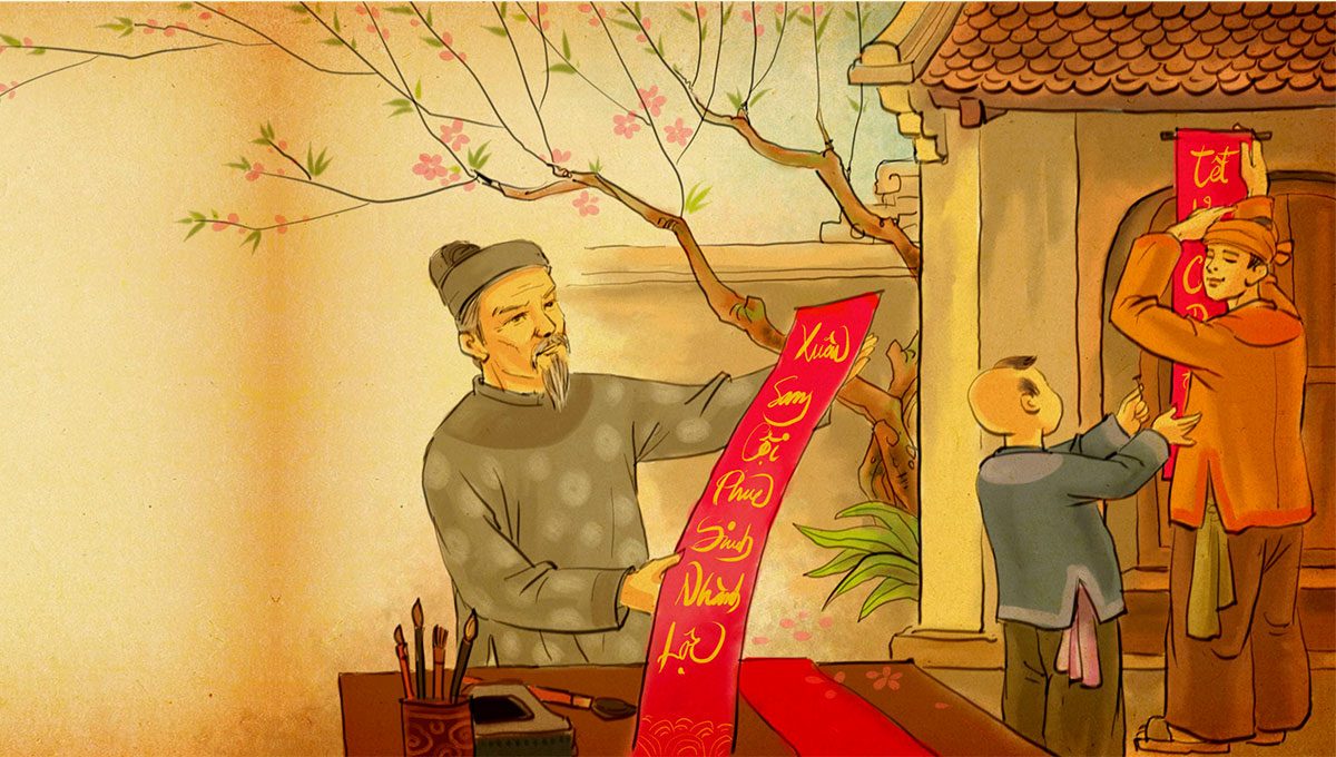 Khi tết đến xuân về, cùng với việc trang hoàng nhà cửa, các gia đình treo câu đối từ ngoài cổng đến trong nhà. Vào thời Lê, khắp kinh thành Thăng Long, từ bậc vua chúa, quan lại, thầy đồ, nhà buôn, các tầng lớp dân nghèo, nhà nào cũng treo câu đối. Câu đối được viết bằng mực nho trên nền giấy đỏ tượng trưng cho sự may mắn, tốt lành và sự ấm áp của ngày xuân. Treo câu đối tết được đánh giá như tinh hoa của cội nguồn, là món ăn tinh thần ngày Tết.