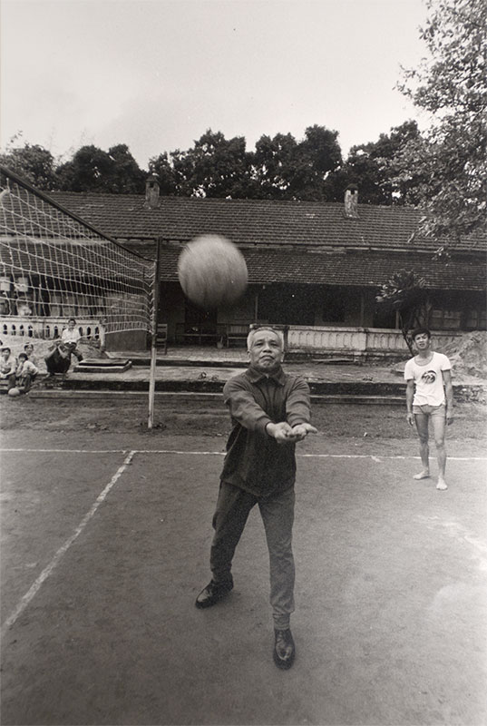 Đồng chí Văn Tiến Dũng tháp tùng Chủ tịch Hồ Chí Minh thăm một đơn vị pháo phòng không ở Quảng Bá (Đại đội cao xạ 57), Hà Nội, năm 1966.