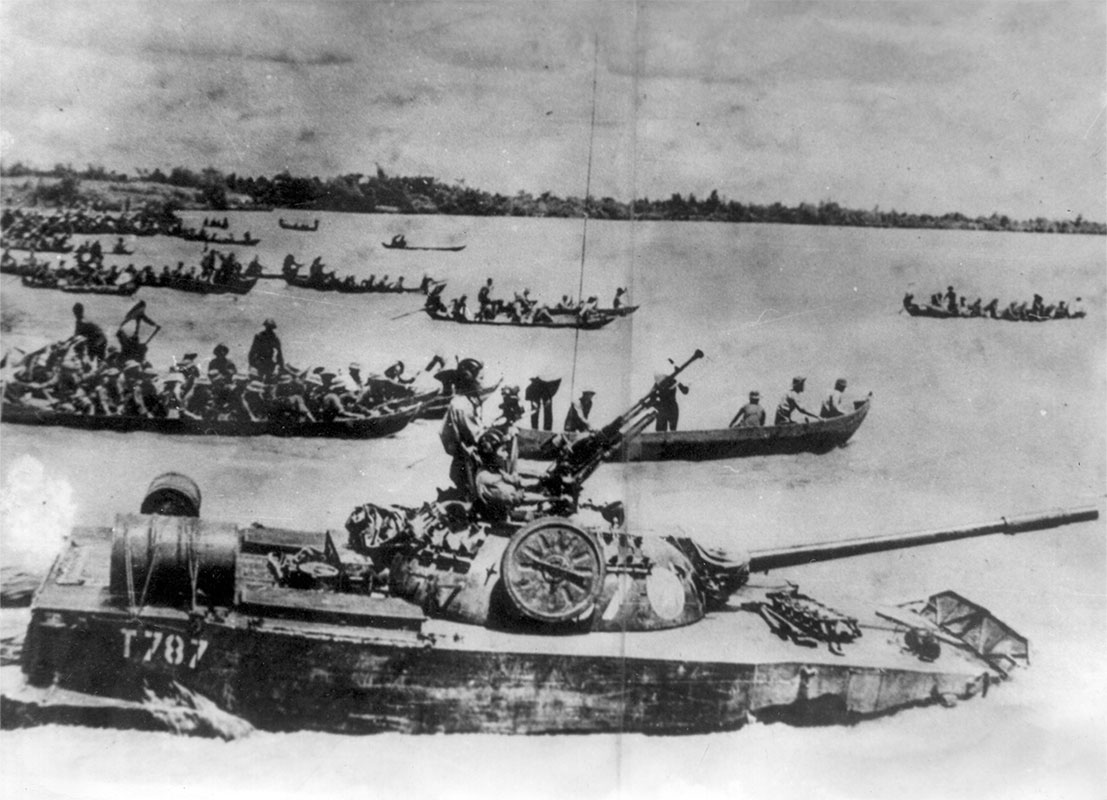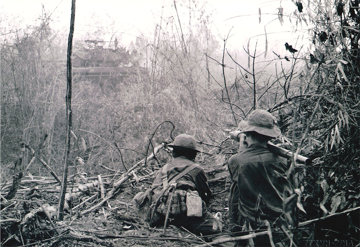 Chiến sĩ quân giải phóng đánh xe tăng địch tại mặt trận Đường 9 - Nam Lào, năm 1971.