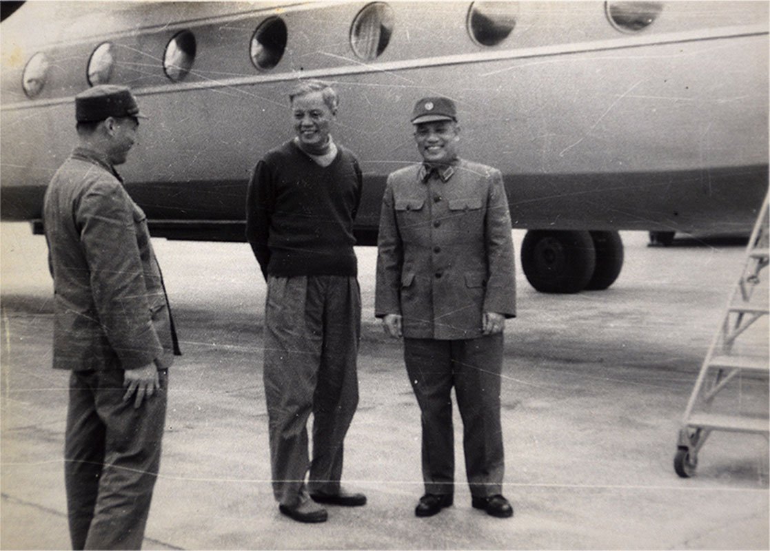 Thượng tướng Văn Tiến Dũng tháp tùng Chủ tịch Hồ Chí Minh thăm một đơn vị pháo phòng không ở Hà Nội, năm 1966.